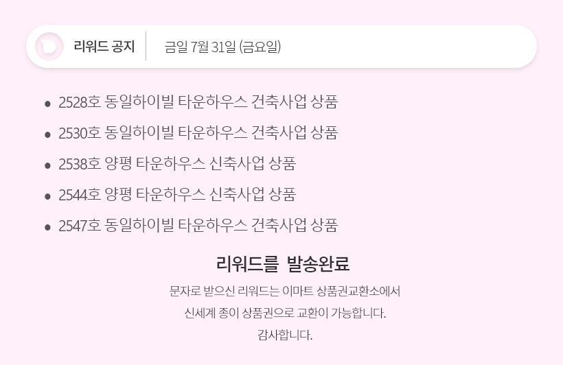 데일리 2528호,2530호,2538호,2544호,2547호 리워드 공지 공지 데일리 2528호,2530호,2538호,2544호,2547호 리워드 공지 2020.07.31 작성자 목록