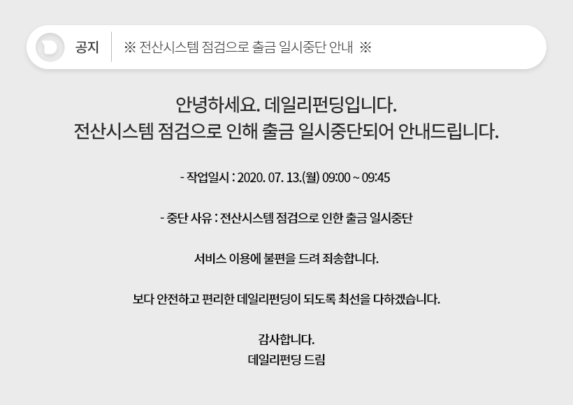 ※전산시스템 점검으로 인한 출금 일시중단 안내 ※