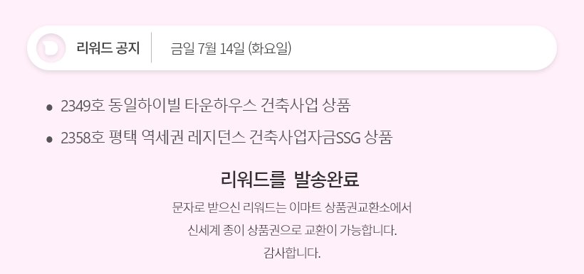 데일리 2349호,2358호 리워드 공지