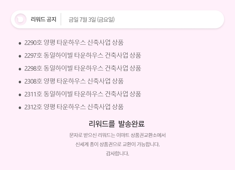 데일리 2290호,2297호,2298호,2308호,2311호,2312호 리워드 공지 공지 데일리 2290호,2297호,2298호,2308호,2311호,2312호 리워드 공지 2020.07.03 작성자 목록