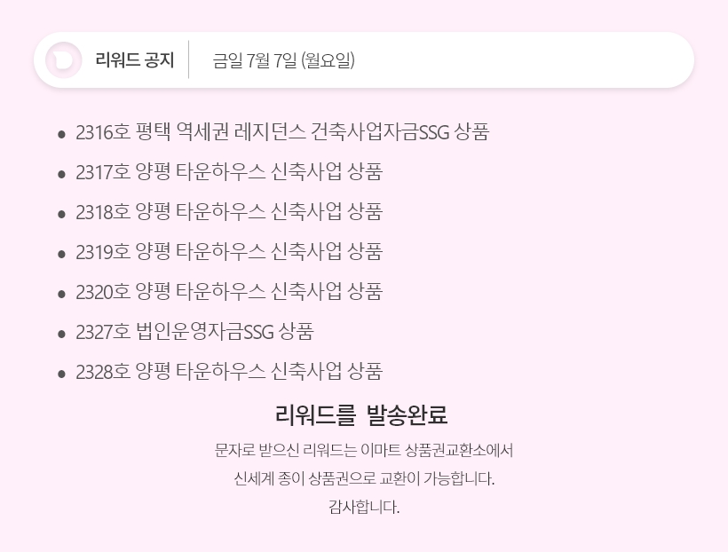 데일리 2316호,2317호,2318호,2319호,2320호,2327호,2328호 리워드 공지 공지 데일리 2316호,2317호,2318호,2319호,2320호,2327호,2328호 리워드 공지 2020.07.08 작성자 목록
