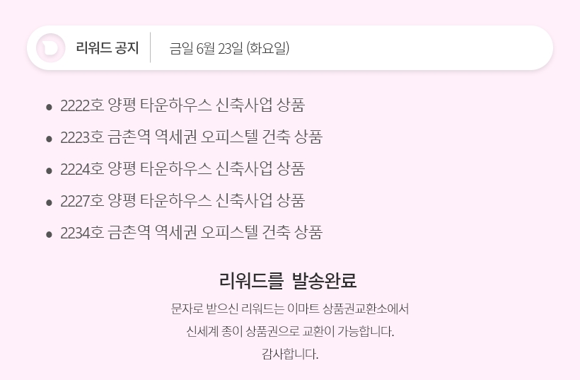 데일리 2222호,2223호,2224호,2227호,2234호 리워드 공지 공지 데일리 2222호,2223호,2224호,2227호,2234호 리워드 공지 2020.06.23 작성자 목록