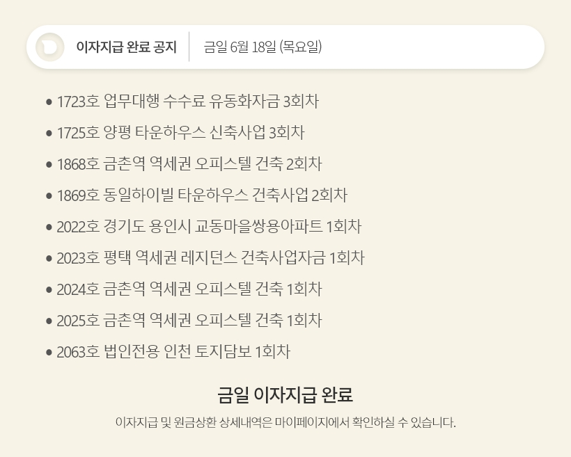 데일리 6월 18일 이자지급 완료 공지