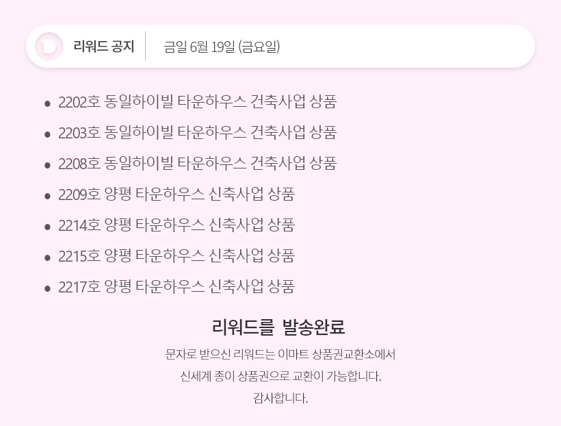 데일리 2202호,2203호,2208호,2209호,2214호,2215호,2217호 리워드 공지 공지 데일리 2202호,2203호,2208호,2209호,2214호,2215호,2217호 리워드 공지 2020.06.19 작성자 목록