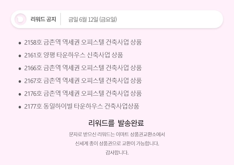 데일리 2158호,2161호,2166호,2167호,2176호,2177호 리워드 공지 공지 데일리 2158호,2161호,2166호,2167호,2176호,2177호 리워드 공지 2020.06.15 작성자 목록