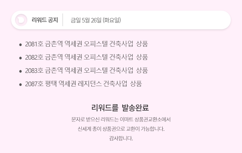 데일리 2081호,2082호,2083호,2087호 리워드 공지