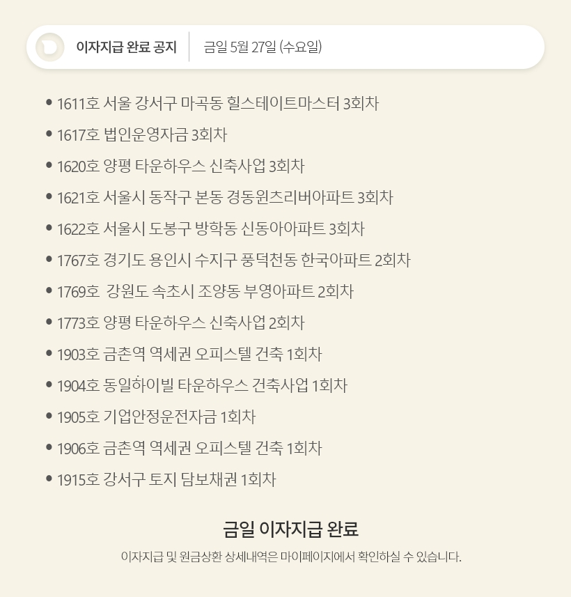 데일리 5월 27일 이자지급 완료 공지