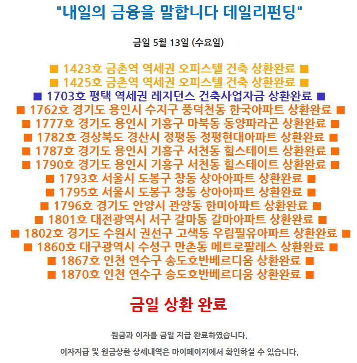 데일리 5월 13일 상품 상환 완료 공지