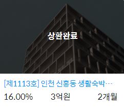 ■ 1113호 인천 신흥동 생활숙박시설 건축사업 상환완료 ■