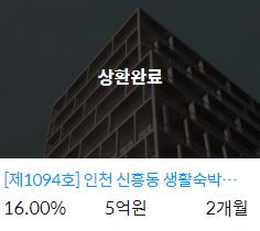 ■ 1094호 인천 신흥동 생활숙박시설 건축사업 상환완료 ■