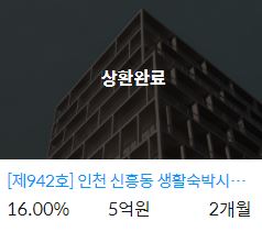 ■ 942호 인천 신흥동 생활숙박시설 건축사업 상환완료 ■