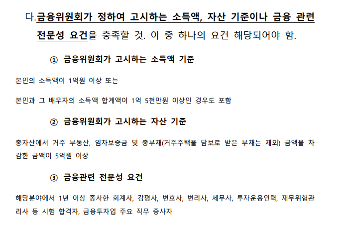 전문투자자 신청 및 자격요건 관련 문의는 가. 에 해당되는 증권사에 문의 부탁드립니다.