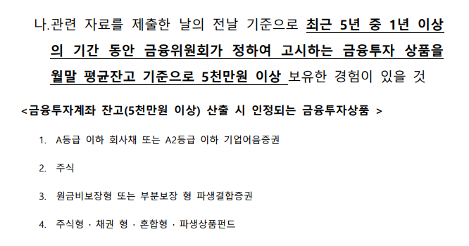 아래 해당 자격요건(나.와 다. ①,②,③ 중1개) 확인부탁드립니다.